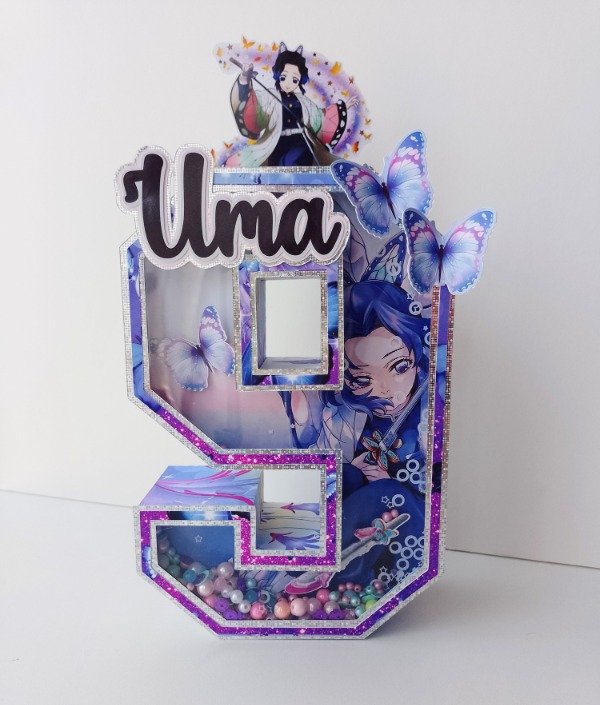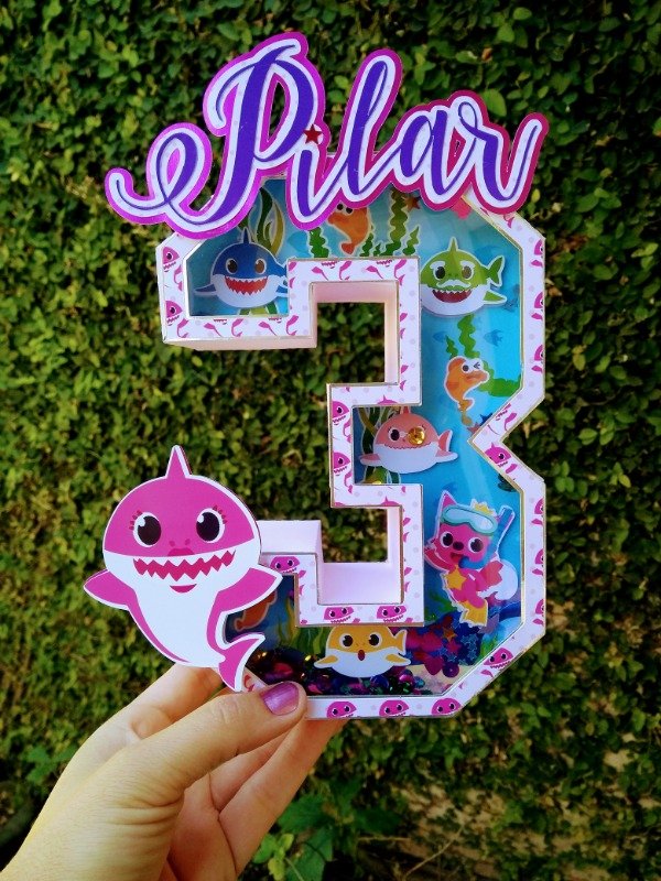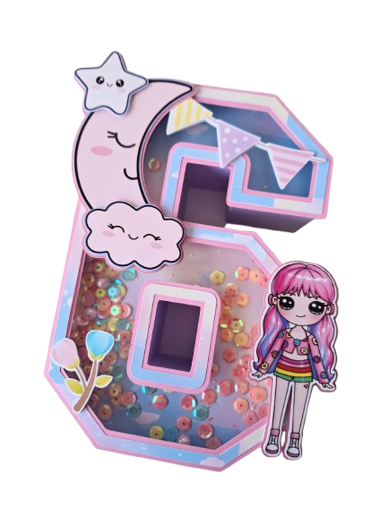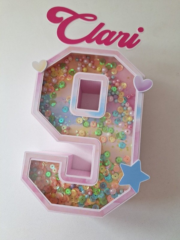 Numeros para decoracion de la mesa infantil. Con apliques en 3D, visor y shaker. Detalles en opalinas glitter y espejadas.